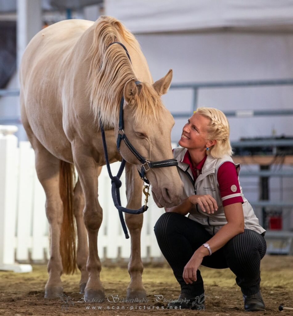 Meine Lusitano Stute Vanilia begleitet mich seit 2011 und ist eine tolle Lehrmeisterin für mich. Mit ihr mache ich vor allem Dressur, Showreiten und Tricktraining. Bis 2019 habe ich auch jahrelang Menorquins und Pura Raza Espanola Pferde nach Österreich importiert und greife hier auf ein großes Fachwissen zu. Mein Angebot richtet sich an Freizeitreiter.