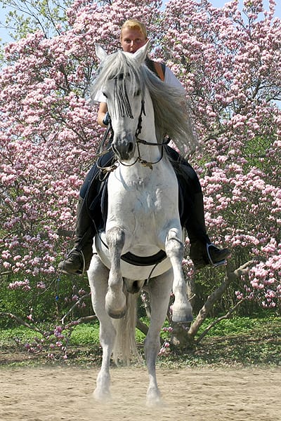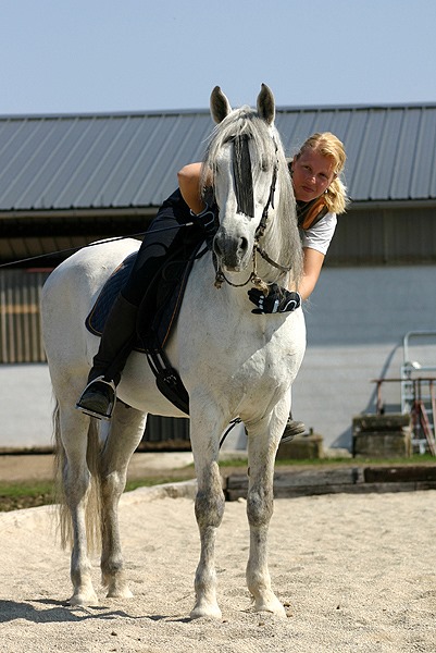 Amigo beherrschte Lektionen von denen ich früher nur geträumt habe (spanischer Schritt + Trab, Piaffe, 1er- Wechsel, sämtliche Seitengänge in allen Gangarten, Galopp-Pirouetten, Levade, etc….) und er war ein toller geduldiger Lehrmeister. Mit Amigo war ich auf etlichen Shows & Messen dabei und er hat mich dabei nie in Stich gelassen. Er legte den Grundstein für meine Leidenschaft für iberische Pferde und den Beginn meiner Liebe zur spanischen / klassischen Reitweise. Aufgrund seines viel zu frühen Todes begann ich meine Züchterreisen und importierte im Laufe der Jahre viele Iberische Pferde (PRE, Lusitano, Menorquin) nach Österreich.